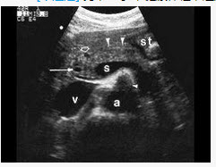 男,27岁,健康体检,超声图中箭头所指为()A: 肠系膜上动脉B: 肠系膜上静脉C: 胆总管D: 肝动脉E: 门静脉