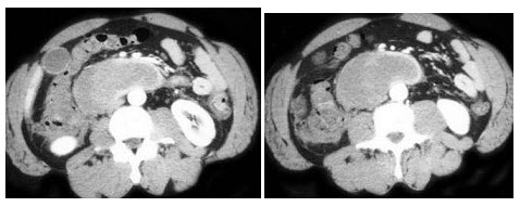 根据所提供的图像,该病例最可能的诊断为()A: 胰腺假性囊肿B: 十二指肠血肿C: 十二指肠癌D: 十二指肠憩室E: 胰腺癌